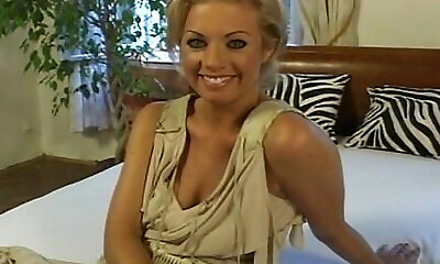 Glamour blonde with sweet melons rides dick and gives her head at the theater