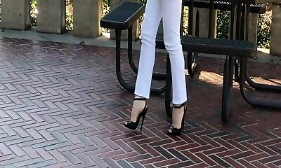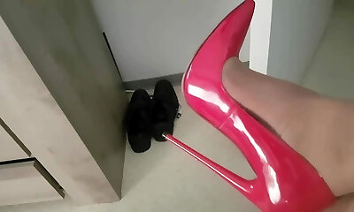 mega-bitch crushing in high heels some fruit in sexy minishort.