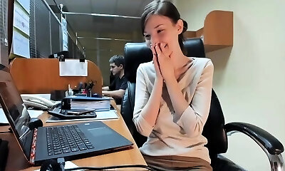 college girl brunette jacks with vibrator in her ass